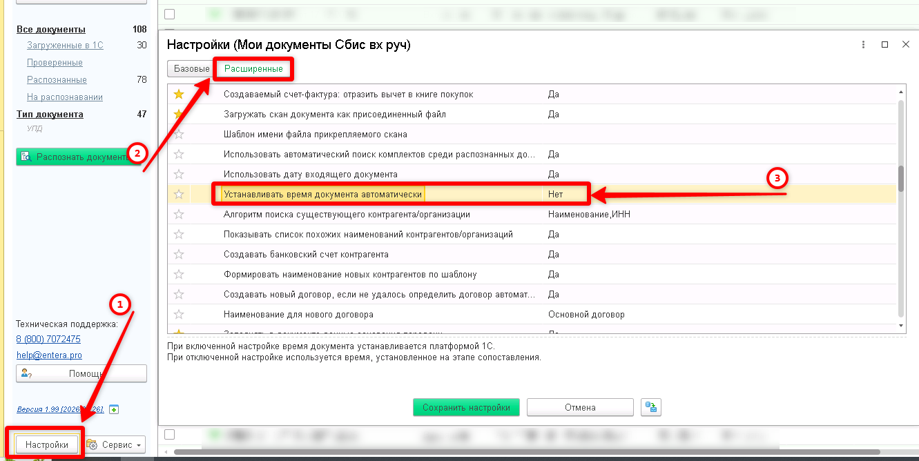 Иногда требуется изменить время создаваемого документа в 1С.